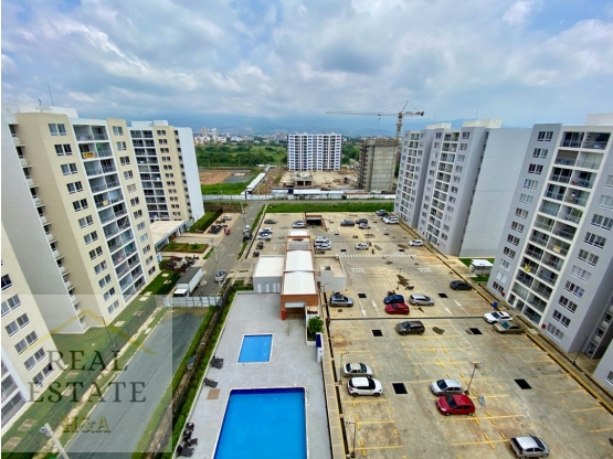El Apto consta de: Balcón con vista externa, sala comedor, Cocina Integral, DOS habitaciones con closet, principal con baño y Vestier, Tercera Hab pequeña o estudio, baño social, zona de oficios. Parqueadero Propio. La unidad cuenta con; salón social, juegos infantiles, piscinas adultos y niños, excelentes zonas verdes, planta eléctrica y tanque de almacenamiento de agua, portería, vigilancia 24/7, circuito cerrado, parqueadero visitantes.