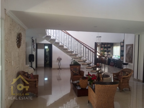 1 nivel: Sala comedor, comedor, sala de Tv, cuarto biblioteca, cocina con isla, tiene cuarto de ropas y deposito, zona de oficios, sala estadero externa con pérgola, 3 alcobas, la principal con baño y baño de compartimiento, sauna, baño social, parqueadero para 3 carros.